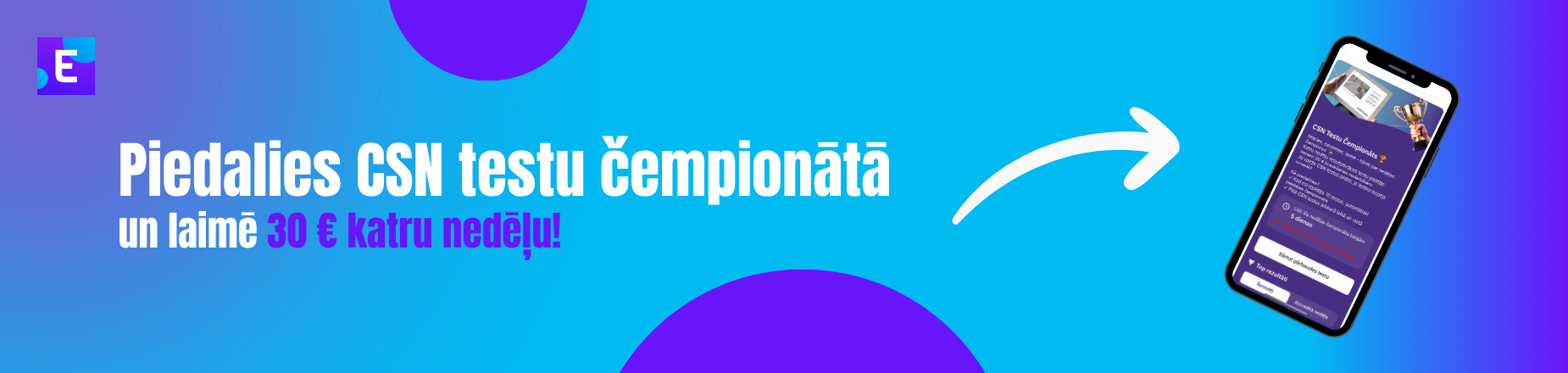 💡 Spodrini savas zināšanas – pildi CSN testus vismaz 10 reizes, kļūsti rezultatīvākais un iegūsti 30 €, ko varēsi izmantot braukšanas nodarbībās. 🚙