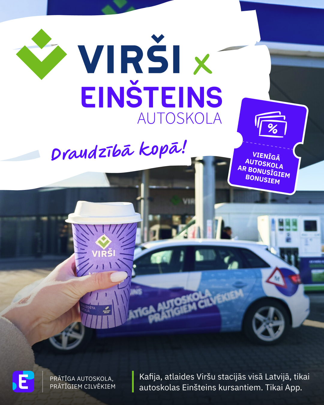 Kafija un atlaides Viršu stacijās visā Latvijā - tikai autoskolas Einšteins kursantiem.