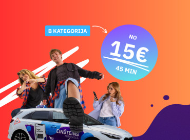 Piesakies braukšanas nodarbībām par īpaši izdevīgu cenu sākot no 15 € par akadēmisko nodarbību (45 minūtes).